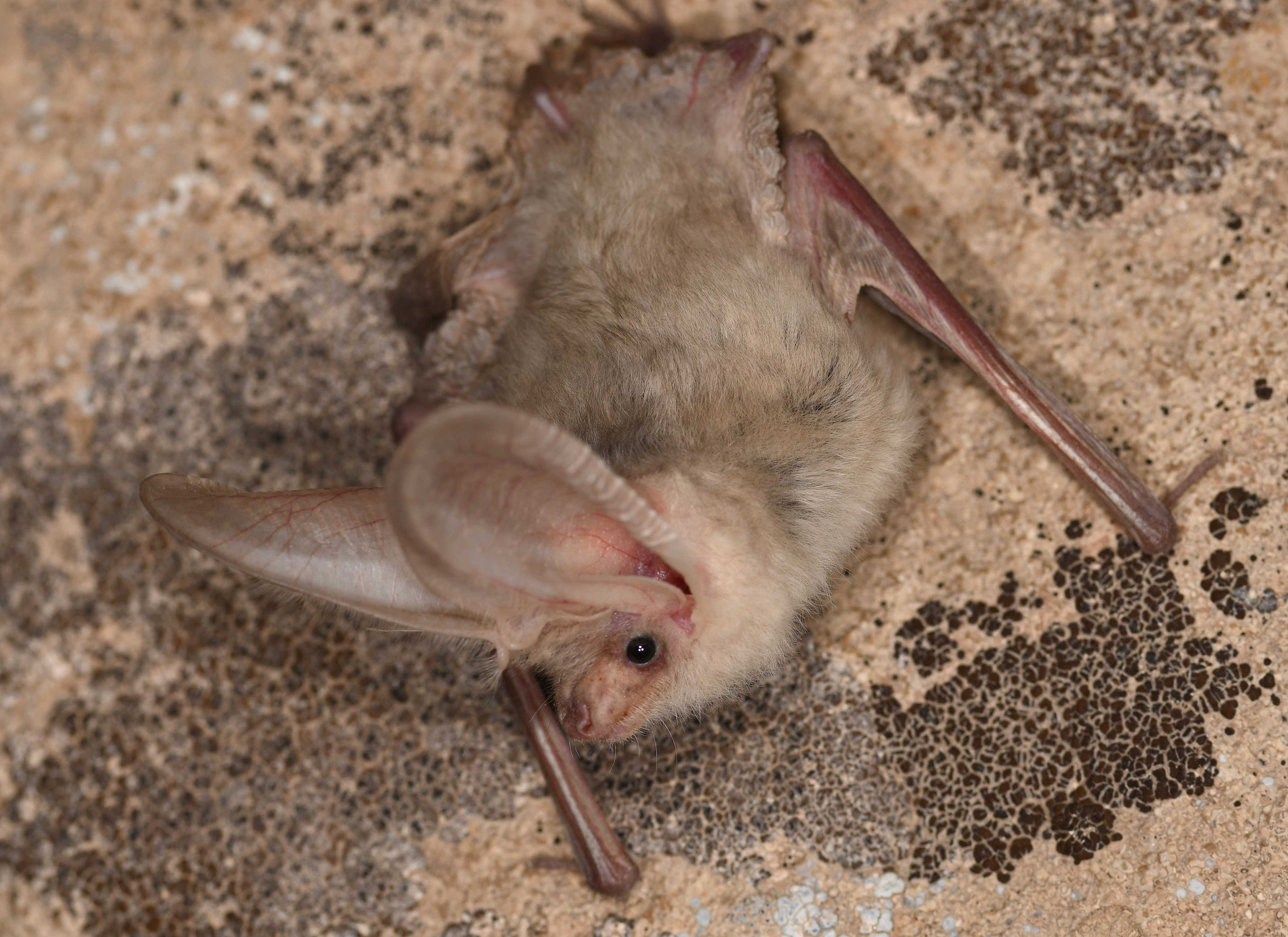 Впервые сфотографирован живым: Туркменский ушан (Plecotus turkmenicus), считавшийся утраченным на протяжении десятилетий, в момент его повторного обнаружения. Фото: Кристиан Дитц.