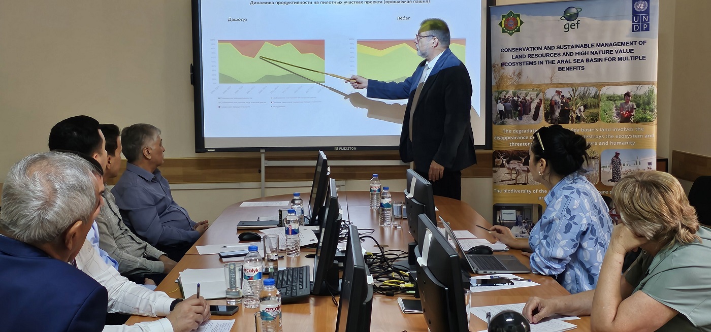В ходе обсуждения были рассмотрены ключевые направления деятельности Рабочей группы, включая интеграцию принципов НБДЗ в обновлённую Национальную программу действий по борьбе с опустыниванием в Туркменистане, определение региональных целевых показателей достижения НБДЗ на пилотных территориях Лебапского и Дашогузского велаятов в рамках проекта ПРООН, а также подходы к оценке локальной деградации земель с использованием современных геоинформационных инструментов. Особое внимание было уделено возможностям мониторинга и анализа показателей, влияющих на деградацию почвенного покрова и растительности, включая особо охраняемые природные территории.